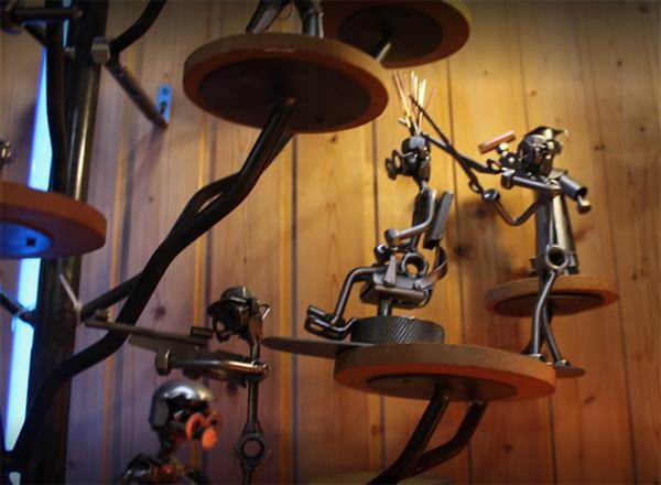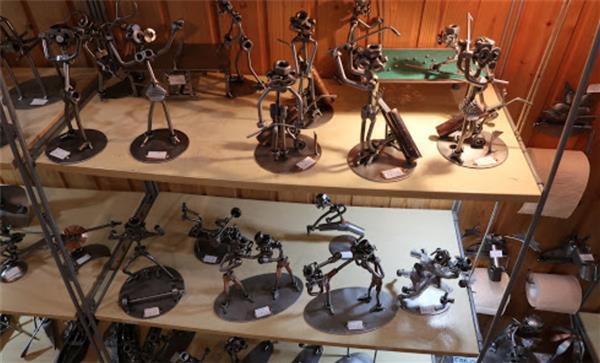 Tako se u njegovoj galeriji mogu pronaći razne zamršene figure izrađene u metalu, figure koje sudjeluju u aktivnostima kao što su sviranje gitare, vježbanje u teretani, opuštanje u ležaljci ili vožnja motociklom.